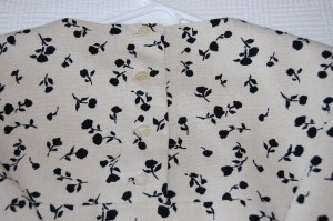 This vintage Vogue pattern gave me two sleeve options. If I had opted for the very short sleeves, I would have had ample yardage. But, for the seasonal reasons mentioned above, I particularly wanted to make this dress with the below-elbow-length sleeves. So, I fiddled and figured and made it work by utilizing both the straight of grain and the cross grain for the bodice/sleeve pieces. I was able to do this because of the allover floral design – ie., no directional limitations.