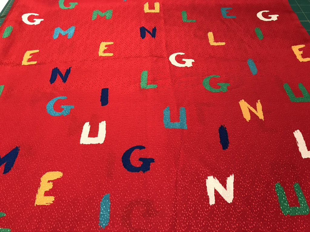 Several years ago I found this fabric on the website of Britex Fabrics in San Francisco.  As I have always been intrigued with “alphabet” prints, and I love red, making this purchase was an easy decision.