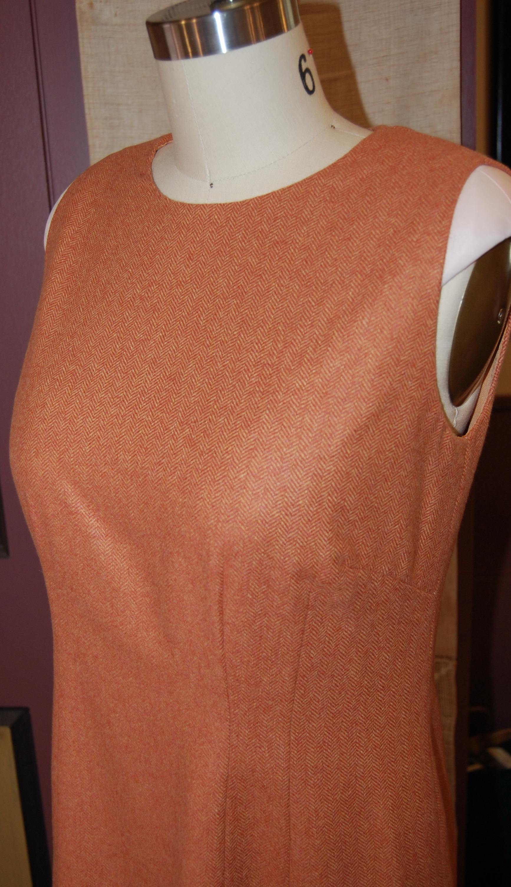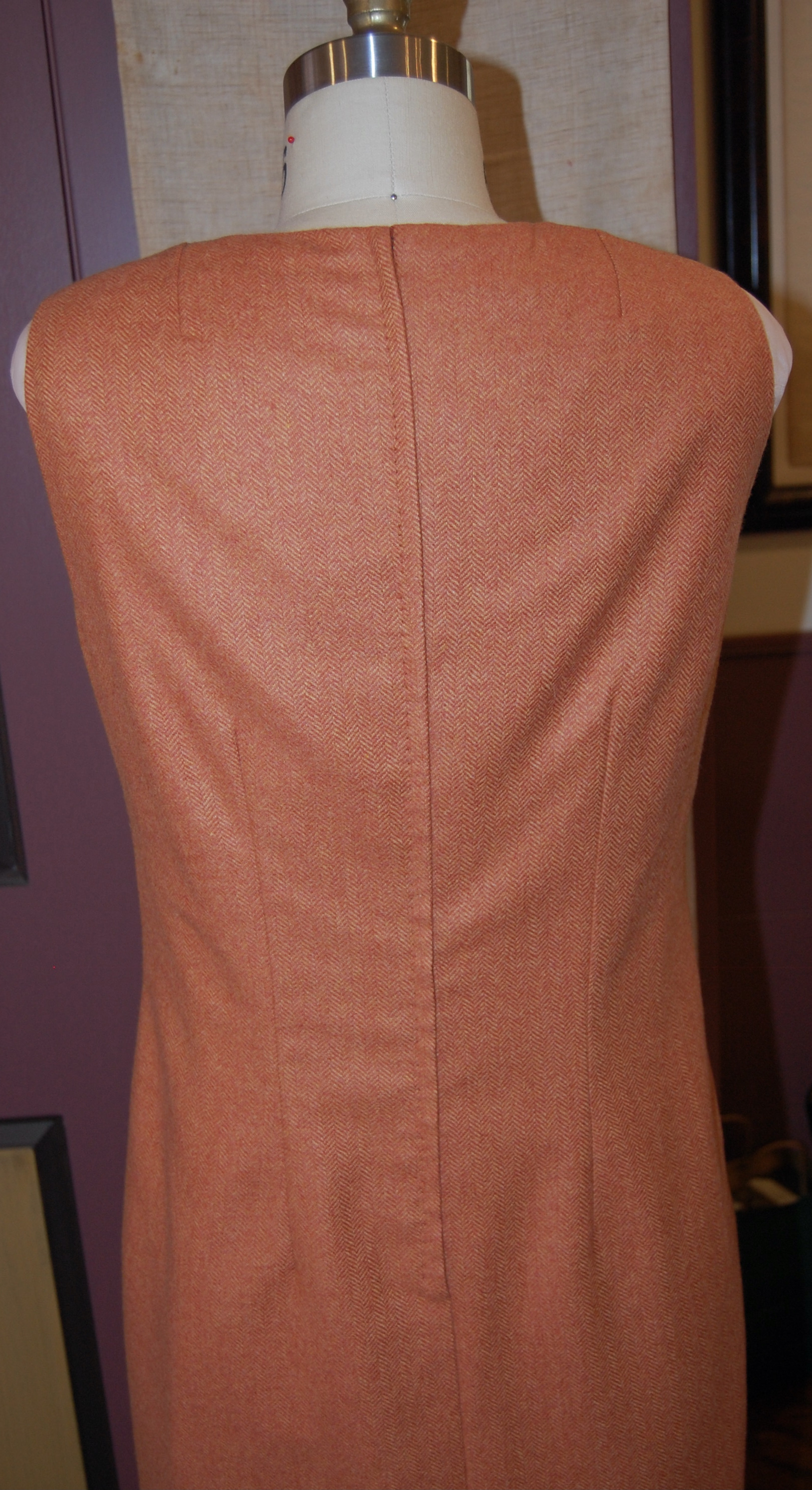 Making this sheath dress was very straightforward, its details identical to the sheath dress which preceded it: lapped zipper, underlined with silk organza and lined with crepe de chine, under-stitched neckline and armscyes, and a real kick pleat.