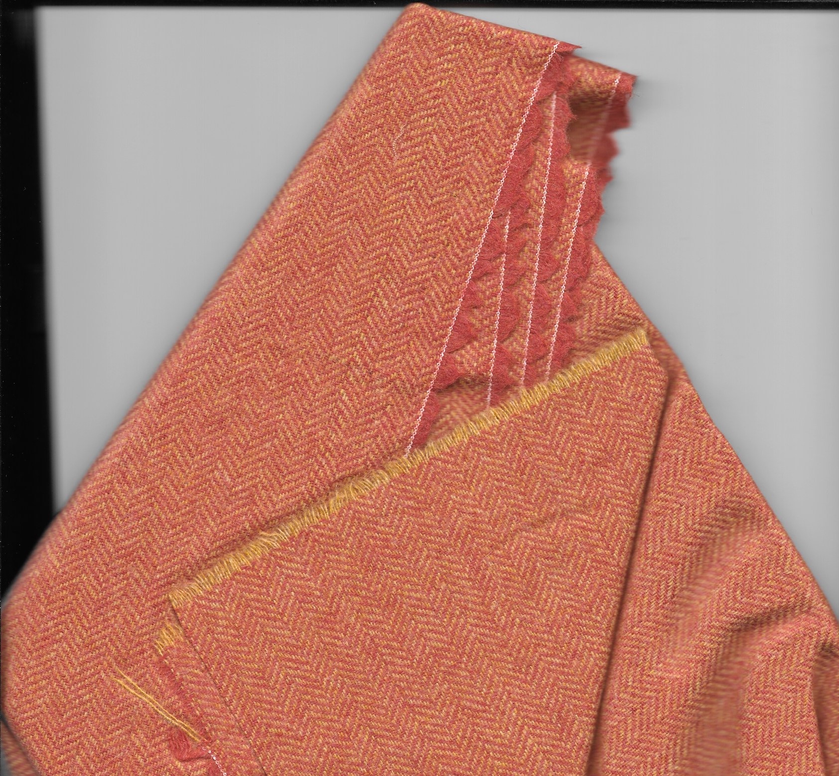 Additionally, I have always loved the herringbone weave. The chevron pattern in this particular fabric is achieved by the use of two contrasting colors, yellow and pumpkin, which produces the lovely and soft deep persimmon color.