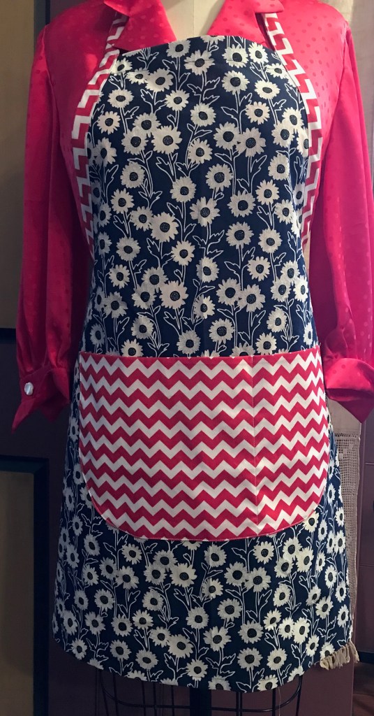 3. Golly gee wiz does this bring back memories! A few years ago I made 21 aprons and hot pads as Christmas gifts. Then my granddaughter wanted to be a chef for Halloween and she wanted an apron, hot pad and chef’s hat and I was delighted to make it all for her. I’m addicted to aprons and couldn’t be in the kitchen without wearing one. I even have a gardening apron. I adore your use of remnants and love all the aprons you’ve made. The world is a happy place when I’m wearing an apron.