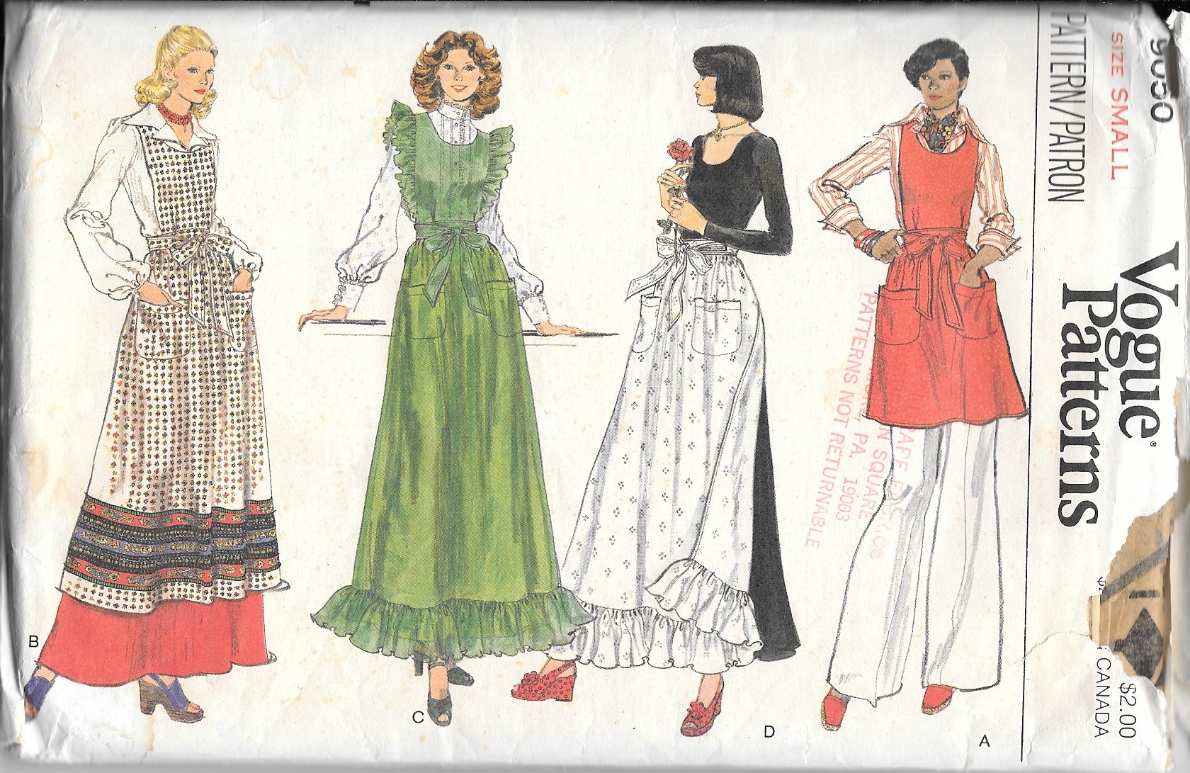 Seriously, who doesn’t love an apron?  They can be all-business or whimsical, pretty or frilly, plain or busy, colorful or monotone, practical or impractical.  The list goes on.  Fortunately I had three apron patterns already available to me, one from the 1950s, one from the 1970s and one more recent one, perhaps from the last 10 years or so, shown in order below.