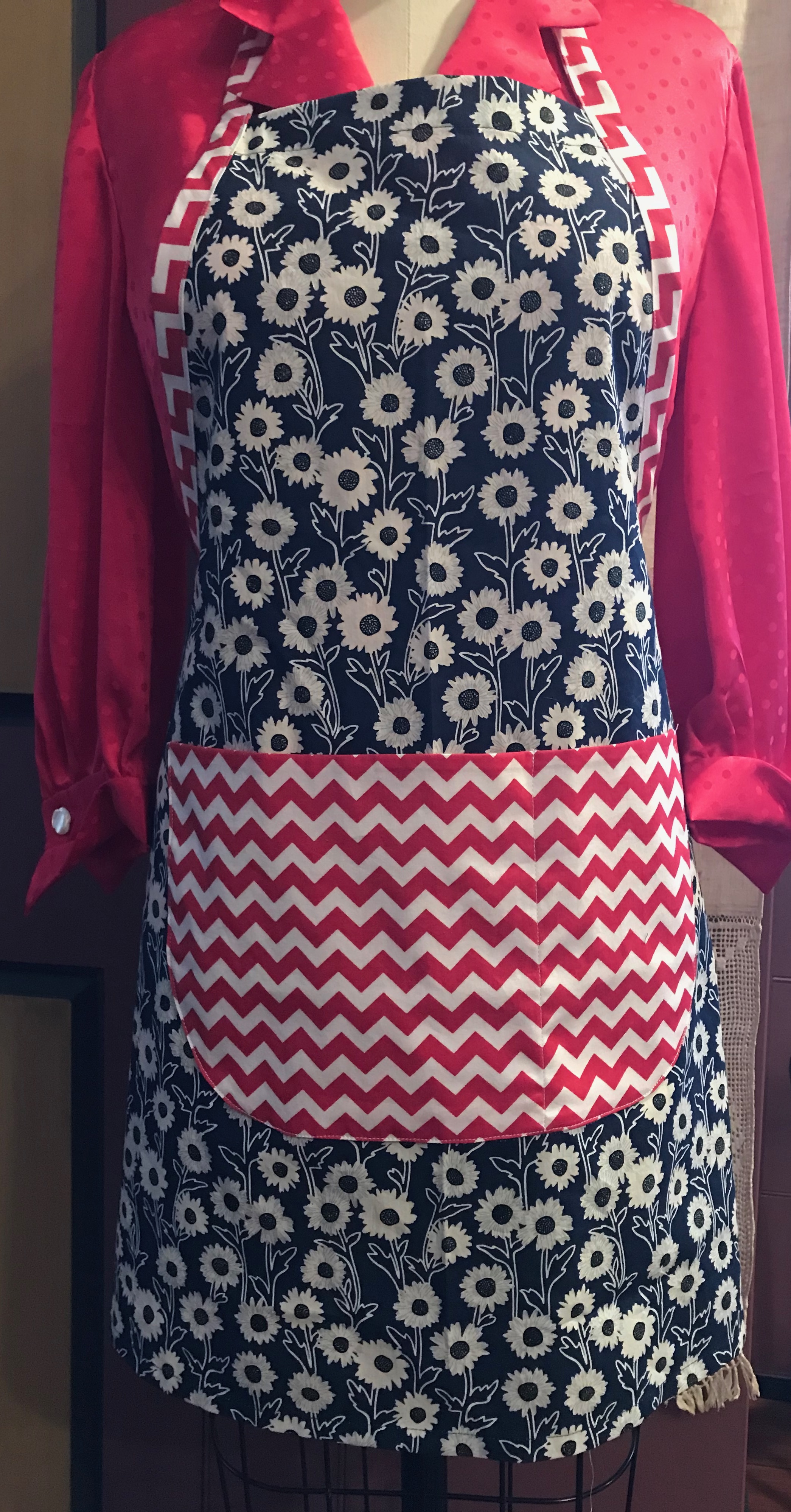 3. Golly gee wiz does this bring back memories! A few years ago I made 21 aprons and hot pads as Christmas gifts. Then my granddaughter wanted to be a chef for Halloween and she wanted an apron, hot pad and chef’s hat and I was delighted to make it all for her. I’m addicted to aprons and couldn’t be in the kitchen without wearing one. I even have a gardening apron. I adore your use of remnants and love all the aprons you’ve made. The world is a happy place when I’m wearing an apron.