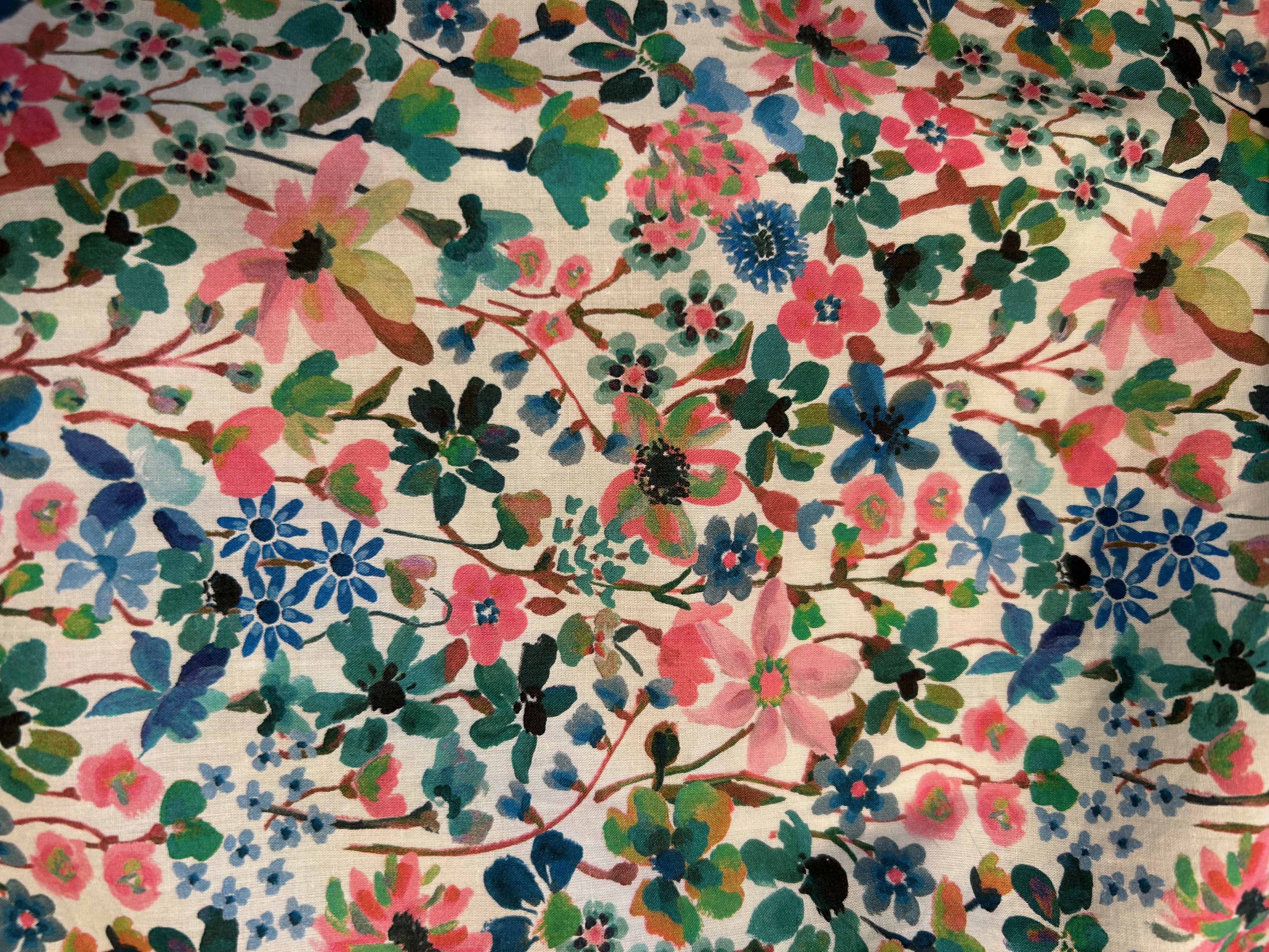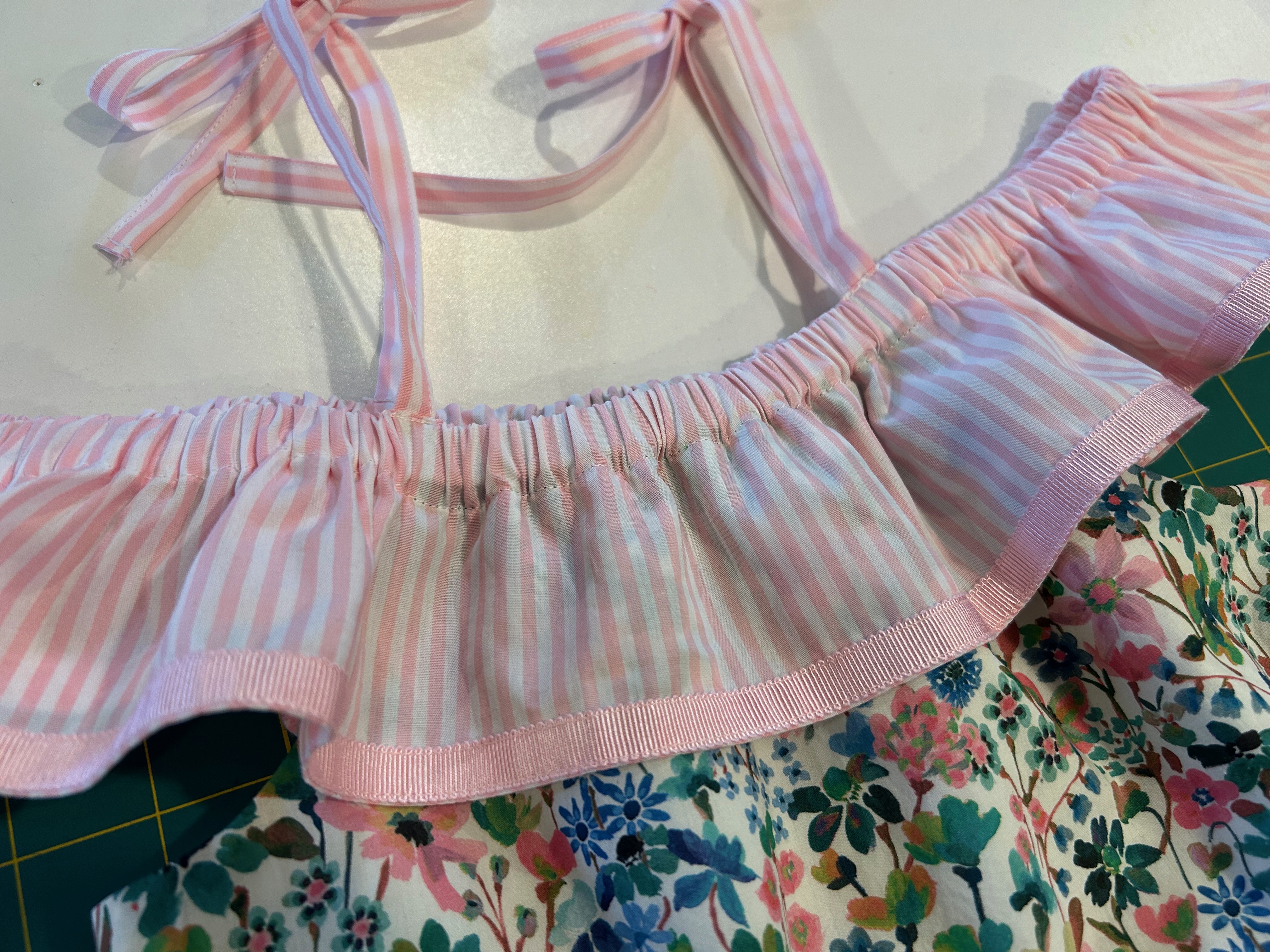 A few weeks later I geared up to make matching dresses for the girls’ Springtime birthdays. I got some direction from my daughter on the style of dress the girls decided they wanted – off-the-shoulder ruffle dresses. I luckily found a new Liberty of London cotton print, purchasing it quickly before it sold out.