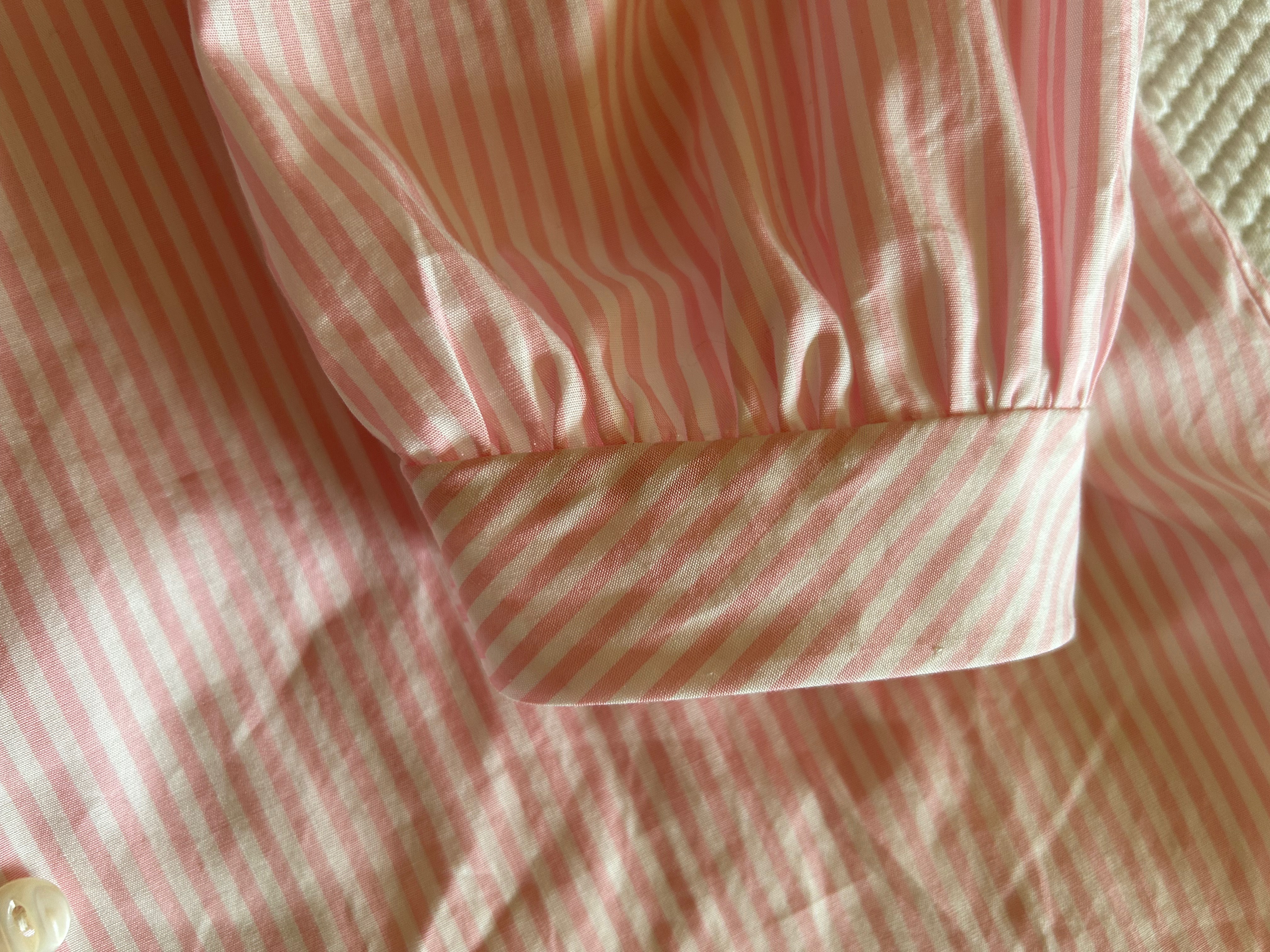 I like the way you used bias strips for the cuffs and back yoke of the pink blouse.