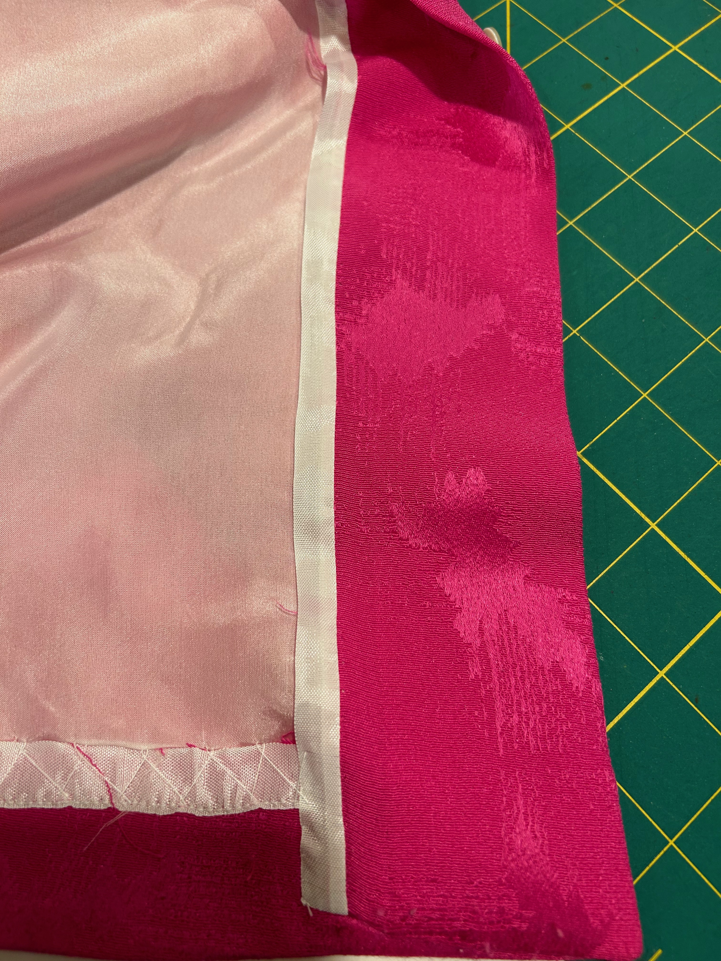 Sometimes extra incentive is needed to push through a project which turns out to be more difficult than anticipated. Such was the case with this pink silk jacquard dress.