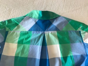 I also like the way the front facing is constructed, and the width of the stand-up collar. However, the pattern lacks slimming darts in the back. My limited experience with sewing tunics has taught me that without long defining fisheye darts in the back, my tunic is going to be baggy and look like a sack. So, I added them.
