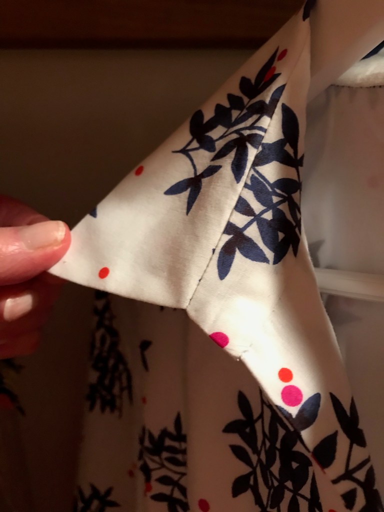 Now, obviously the facing does not show on the right side of the dress. Still, I like to match across seams if possible. Which it wasn’t. I had to give myself permission to have a mismatched facing, and then I moved on. (I forgot to take a picture of the facing, unfortunately.)