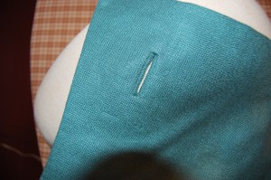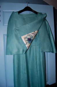 I actually made this cape a number of years ago, but I must admit I have worn it infrequently. The wide stance of the neckline makes it a little unstable. I guess there is a good reason most capes have a tighter neckline – and open in the center front.