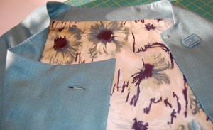 I was attracted to this pattern because of its lengthwise darts, its rolled collar and back neckline darts.