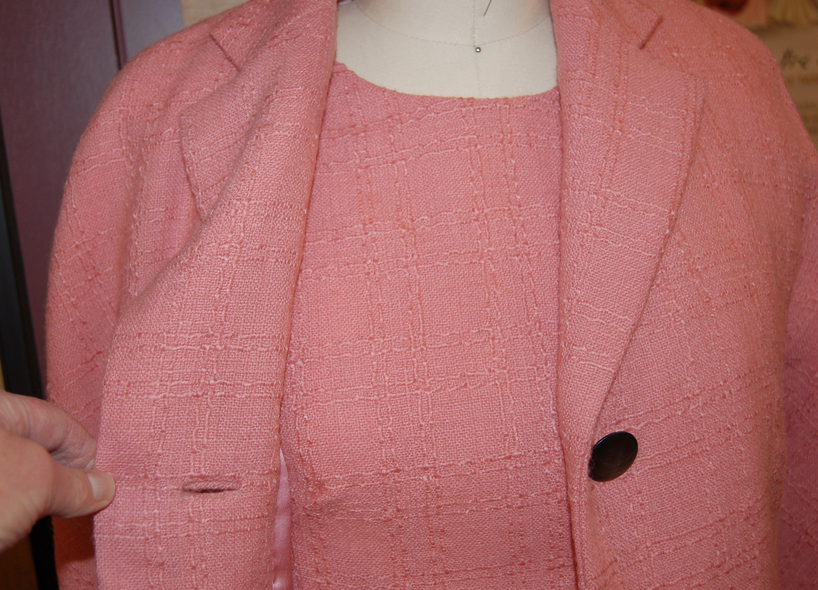 After reading the storyboards on tailoring and dressmaking, I really wonder where a Chanel jacket fits in? The tailoring division of a fashion house specializes in suits and structured garments, with an emphasis on “manipulating fabric on the grain,” and “precision and accuracy when cutting.” The dressmaking division “specializes in draping and soft construction,” “being less beholden to line and structure.” It seems to me that a Chanel jacket straddles the line between the two concepts, being structured, but with a soft fluidity that feels like a dream to the wearer.