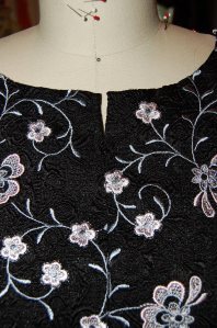 I had purchased this silk charmeuse from Mendel Goldberg Fabrics in New York City several years ago. It reminded me of fabric which one might see in a design by Christian Dior, due to its “Impressionistic” appearance.