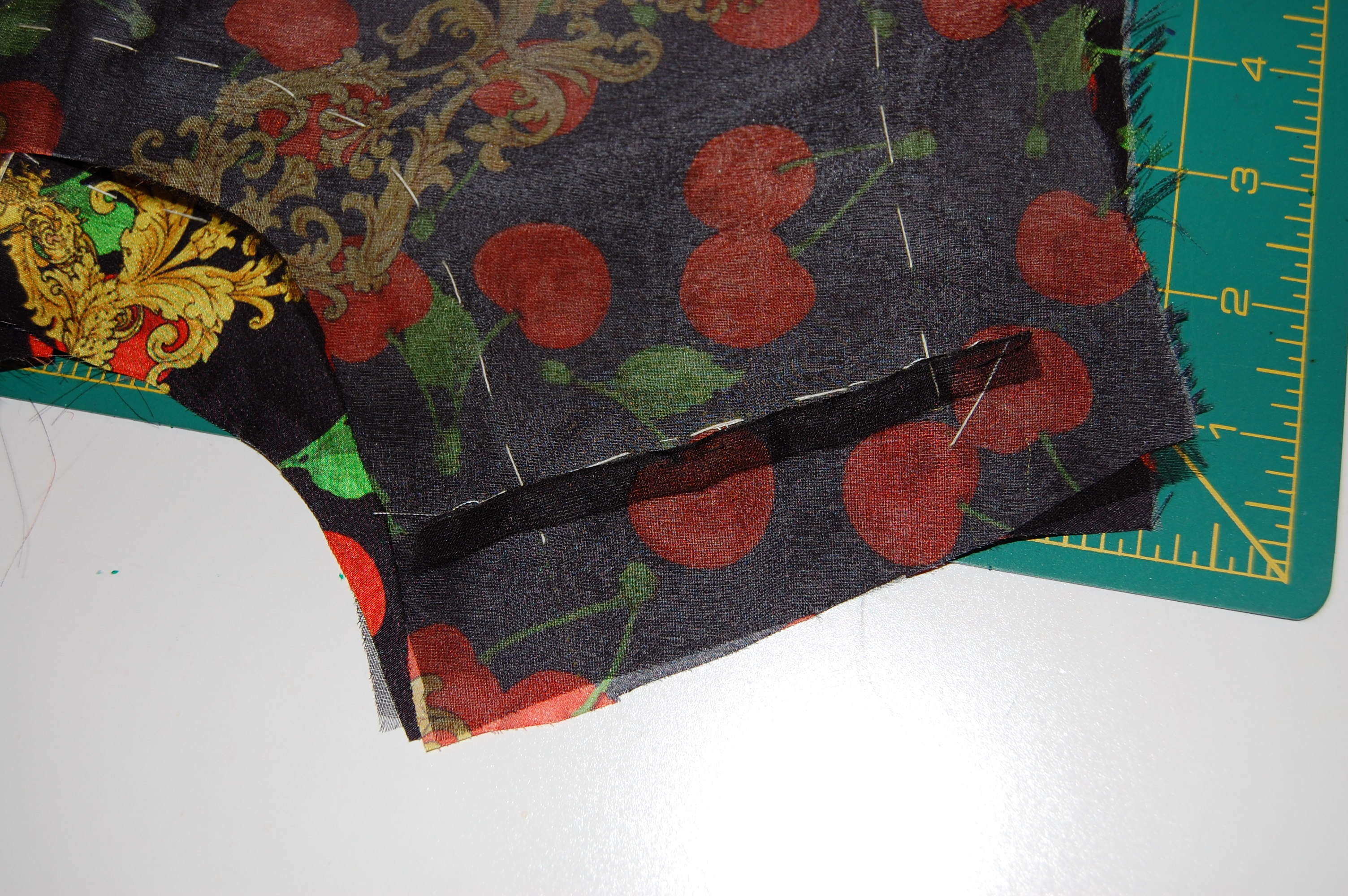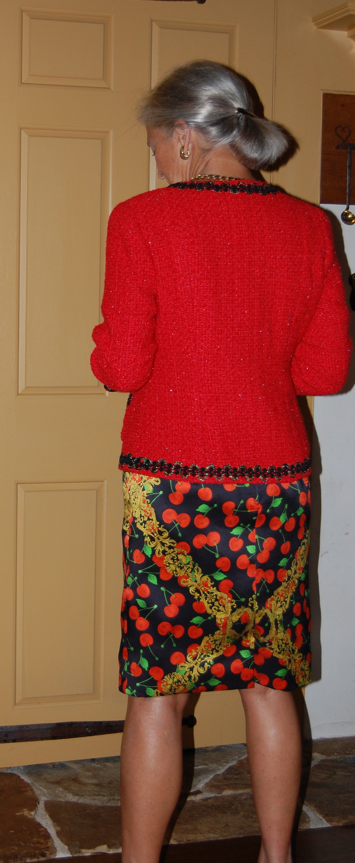 I thought the shoulders of the overblouse extended a little bit too wide, so I cut the top of the armscye in about ¾ of an inch, graduating it down to join the lower part of the armscye. And fourth – I added a slit at the lower back center seam to make walking easier. I seem to do this frequently with vintage patterns.