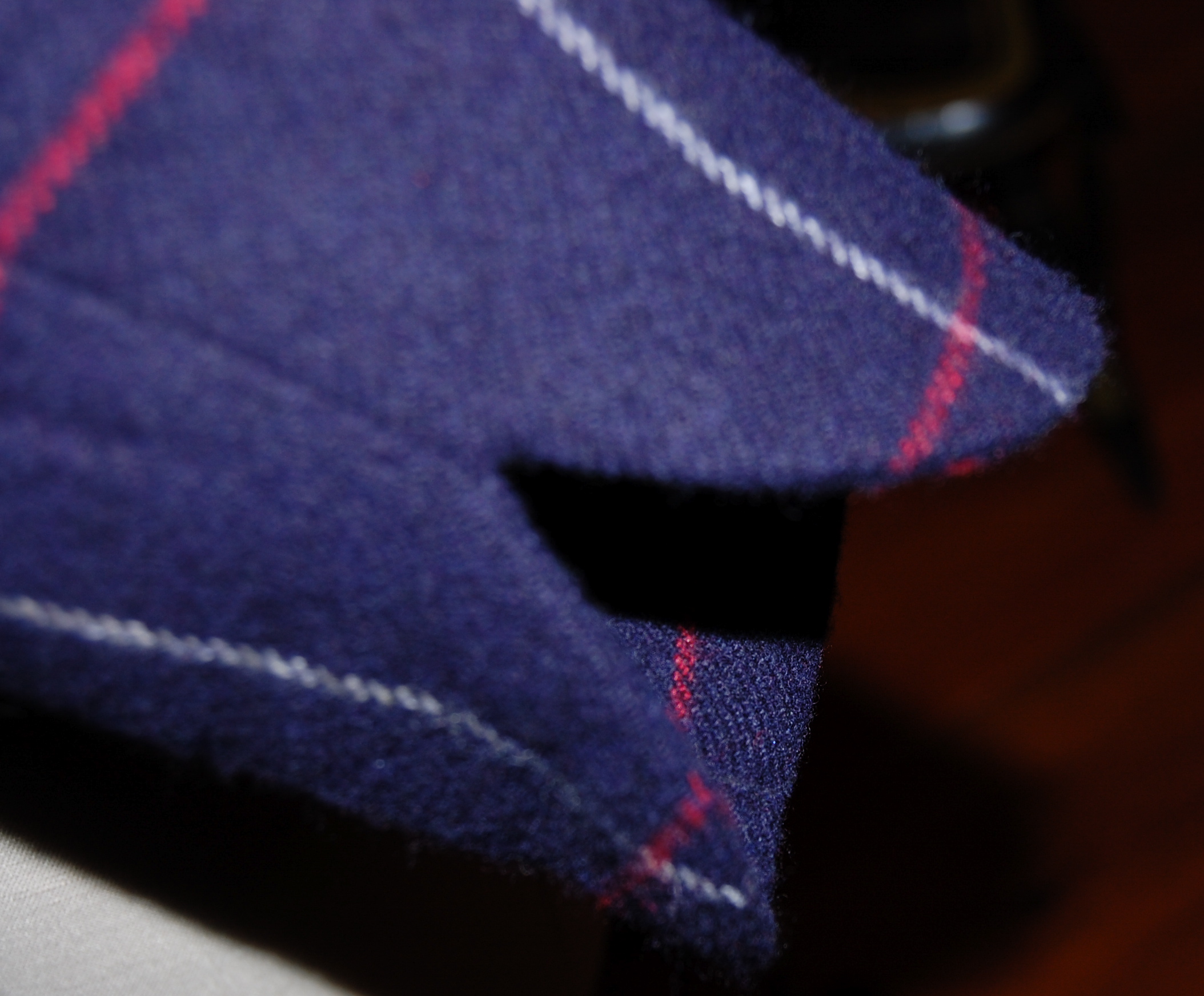 After I had the muslin fitted and completed, I got the idea to make the end of the tab on the collar rounded, to mimic the curves on the jacket’s sleeves and on the jacket’s lower front edges. I also had to take significant width out of the collar. I am hoping it will work and look good…