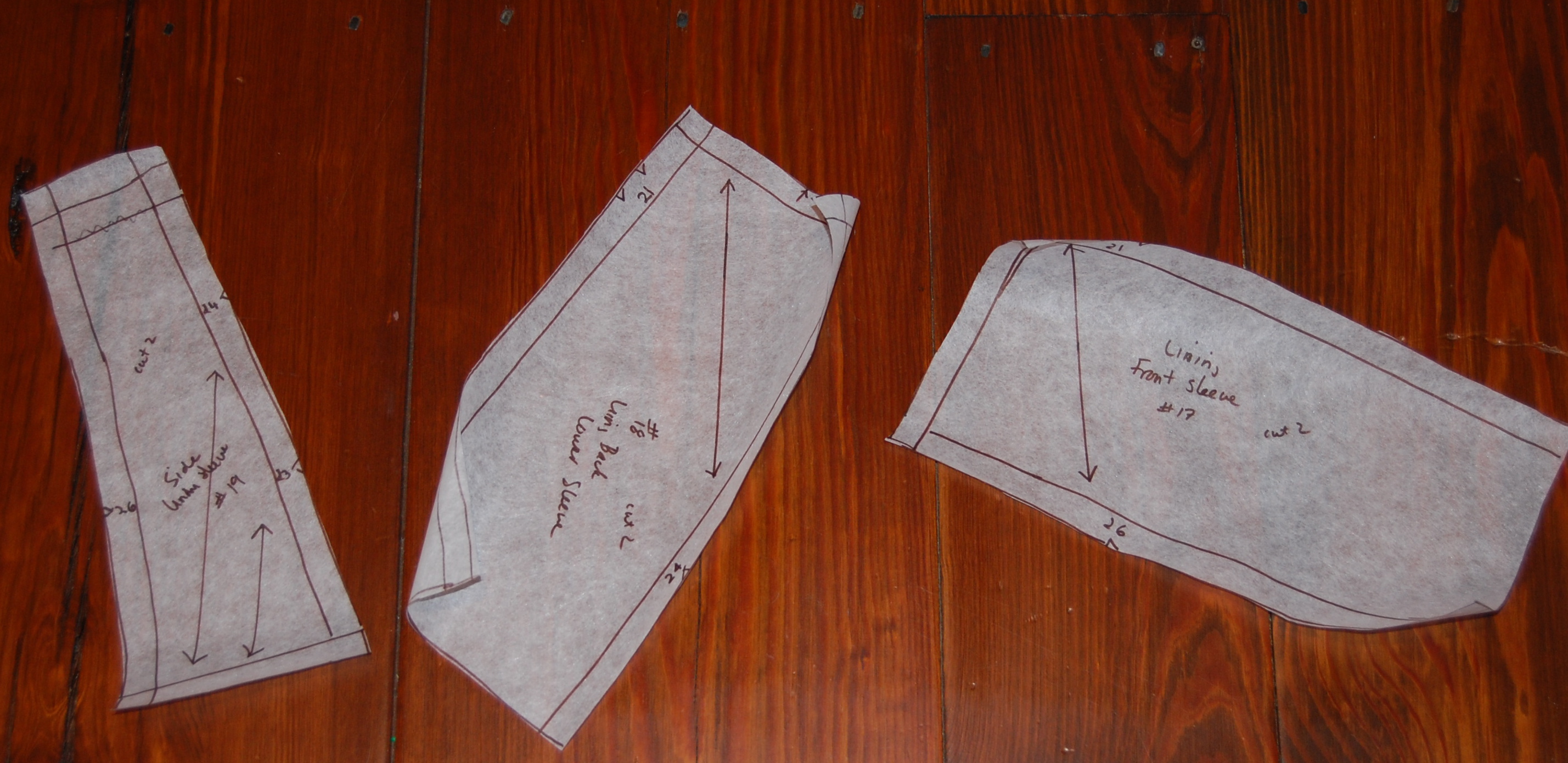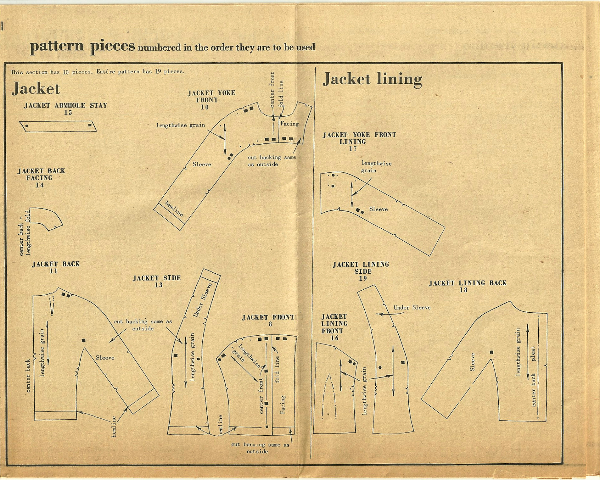 The long darts in the coat sleeves are an unusual detail, and notice the four neck darts on both the coat and the blouse. These vintage patterns give so much useful information on the backs of their envelopes.
