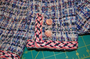 When it came time to apply the bias-cut trim to the hem and sleeves, I had to experiment around a bit. I didn’t want it too wide, but it needed to be substantial enough to look like it was meant to be and not an afterthought or decision made in desperation! I finally settled on an exposure of 1/2”.