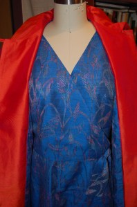 However, what really makes me not only think in color, but also dream in color, is a piece of Thai silk just given to me from a sweet and thoughtful friend. She told me it had been given it to her over forty years ago by a friend of hers, purchased while in that part of the world. My friend had finally decided she needed to part with it as she was certainly never going to use it. Lucky me! With over four yards and over 50” wide, I have plenty to work with. What should I make?