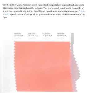 I certainly did not see that coming. Which made me really curious about this selection by people obviously much more in tune with the “global zeitgeist” than I! The more I read about the decision, the more I understood it – and, although it is not exciting as a red family hue would be, I do find it to be empowering in its own subtle way, “capturing a global mood of connection, comfort, and harmony.”