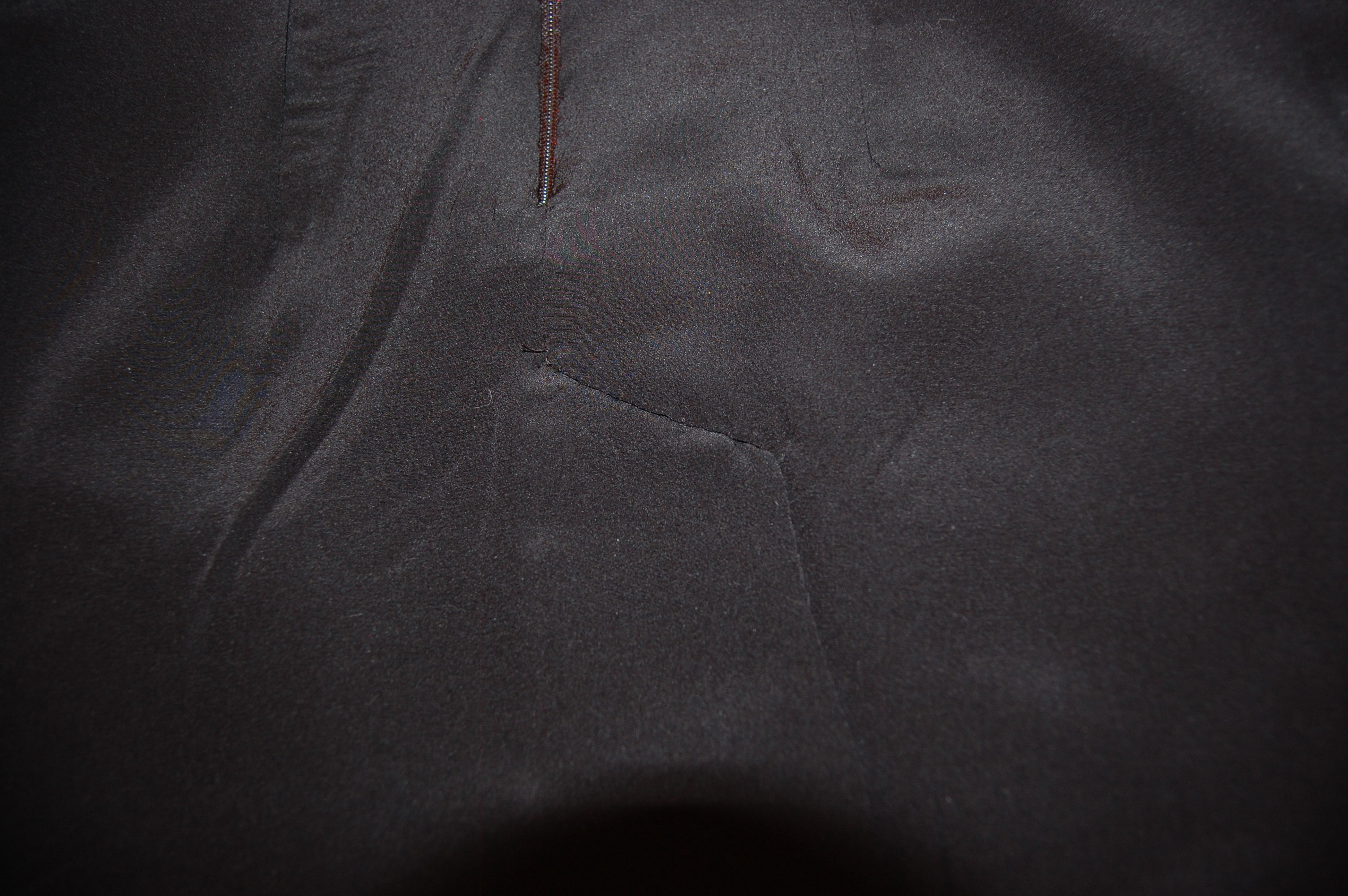 One of the design features of this dress is the kick pleat, which has its origin in the back seam starting at the bottom of the zipper. I wasn’t sure how I was going to work the lining around this, but I also thought I could probably figure it out.