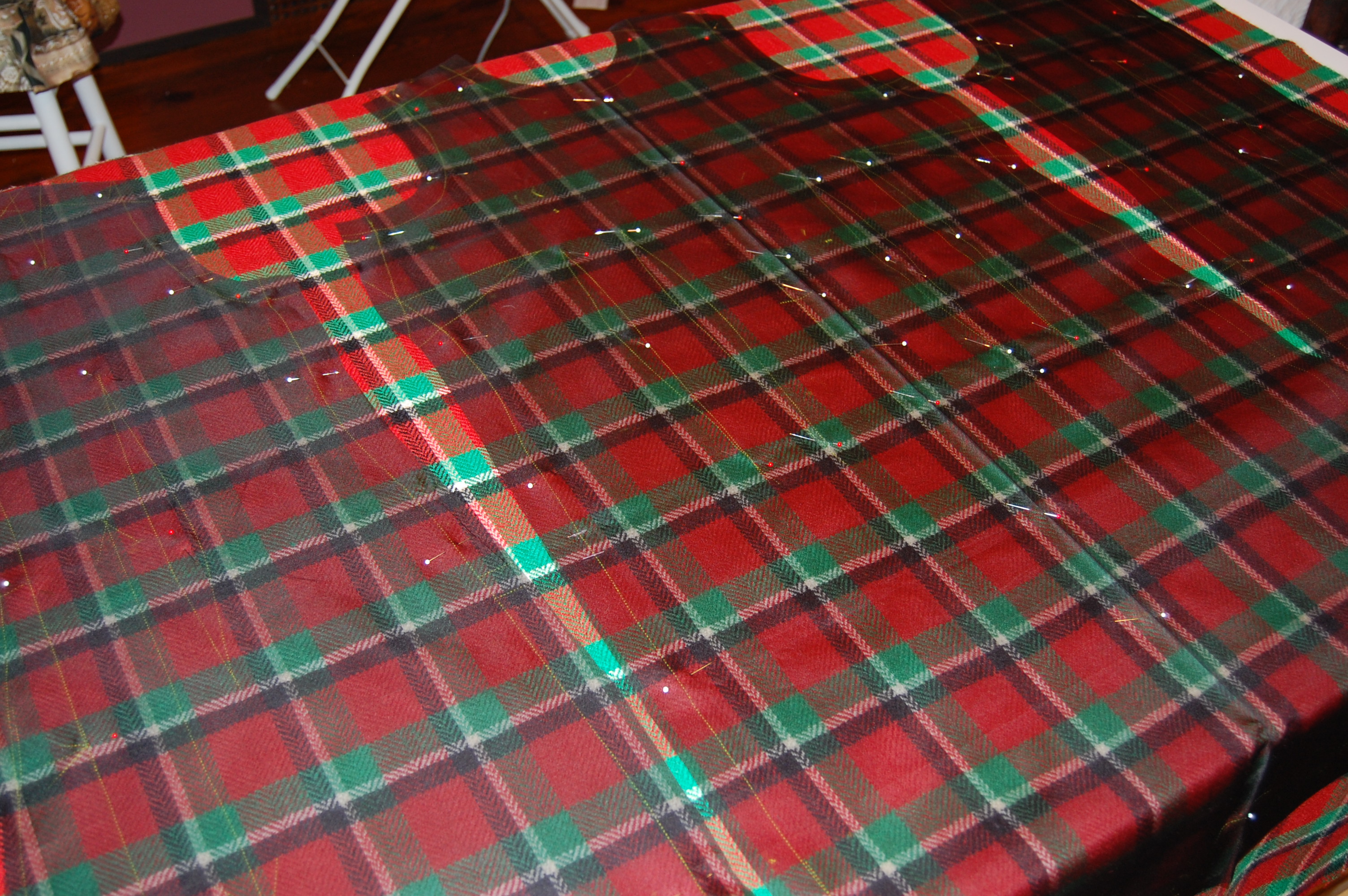 I thought the wider, darker part of each woven “block” on the plaid should be oriented to the bottom of the dress, which I believe is apparent above.