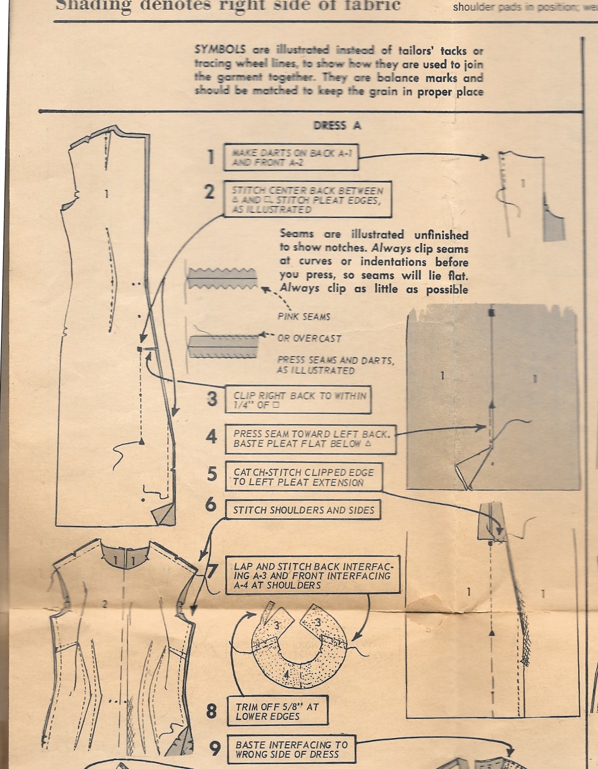 You will notice this dress has two shaping darts on either side of the front panel, in addition to the bust darts. The back has one shoulder dart and one shaping dart on either side.
