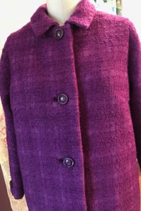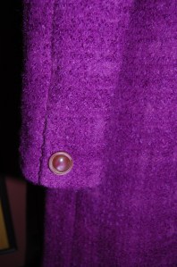 As you can observe, I decided to leave them with the buttons facing forward. Several comments left by readers (thank you – you know who you are and I am very appreciative!) got me thinking anew about the orientation of the tabs. Then I had an aha moment when I realized that the one button which is visible on the front of the coat, at the neckline, might look a bit disconnected without its counterparts showing on the sleeves. Decision made, with confidence! However, I doubt I will ever look at a sleeve tab in quite the same way again.
