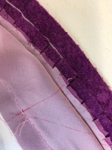 I deviated from my Vogue pattern to add this dressmaker detail, but I am sure they would have approved. My Avoca wool scarf which is such a perfect complement to this coat inspired me to choose checked piping. I “robbed” a small corner from some pink silk gingham (intended for a Spring coat, as mentioned previously here) to make my flat piping.