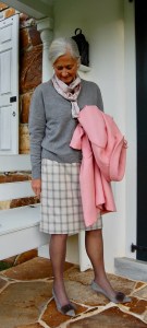 So, now the big question, one which I have been asking myself frequently as of late, “When and where will I be wearing this lovely ensemble?” It seems life is just so despairingly casual now, affording few opportunities to wear pretty dresses and skirts and specialty coats. I try to buck the trend when I have the place and time to do so – and I have yet to feel like I have been overdressed. Of course, Christian Dior had something to say about this, too. “Generally it is very bad to be overdressed, but I think that in certain circumstances it is very impolite and wrong to be underdressed.” I could not agree more and personally prefer to be slightly overdressed than underdressed. How about you? I do hope my pink coat, paired with this gray skirt, will prove to be the perfect dressing for many occasions. I am certain I will enjoy wearing them.