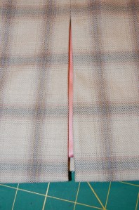 2) Even though the front center of the skirt was easily discernable because of the placement of the plaid, I still marked that line with a running stitch. I find that helps to eliminate mistakes! That was the final bit of basting thread which I removed from the skirt when it was finished.