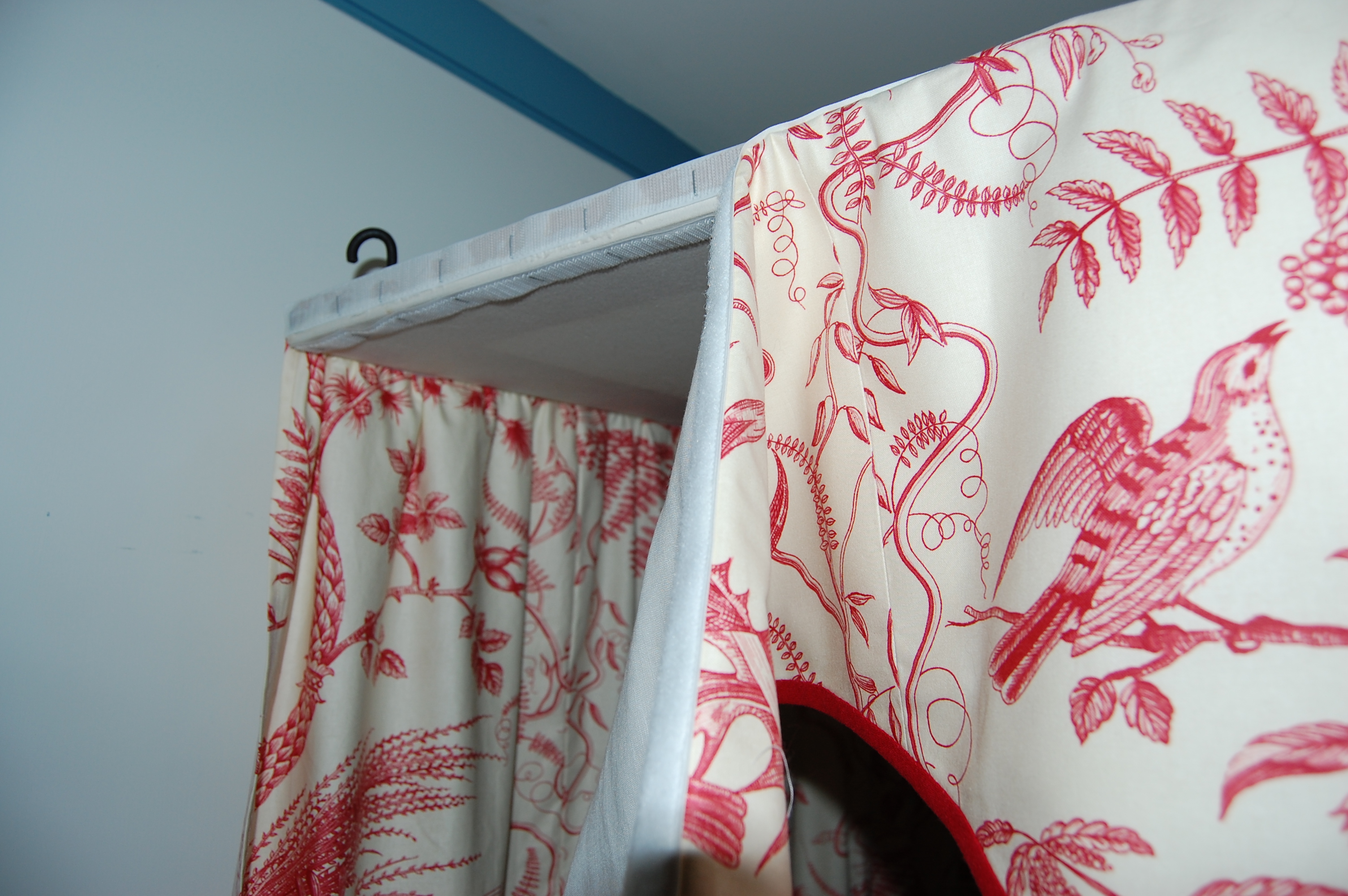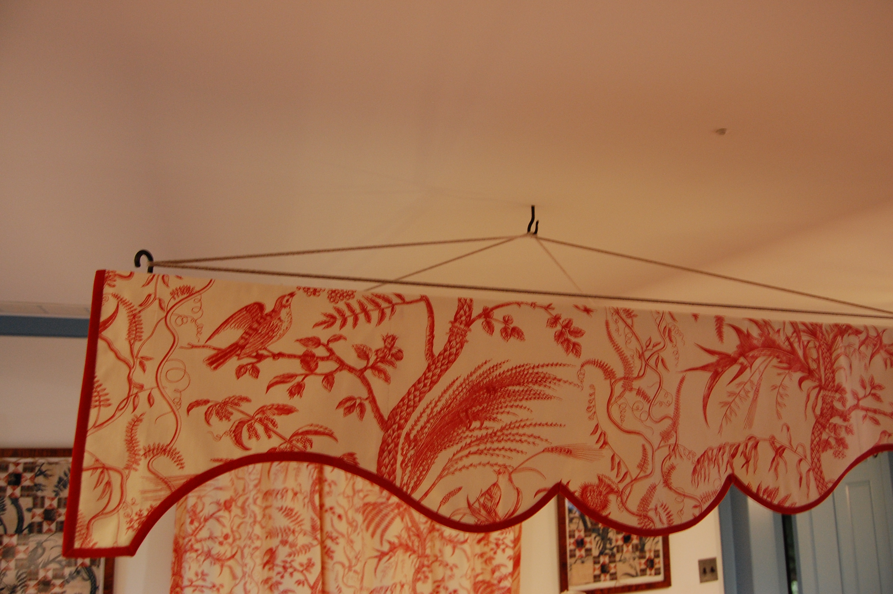 Inspiration number 2 came when the air-conditioning in our bedroom had to be replaced during a very hot summer. Until the work could be completed, we moved into our grown son’s old room, where the AC was still going strong. I had already made simple hangings for his tester bed – and the pleasure of sleeping under that canopy convinced me that it was time to turn my thoughts into reality!