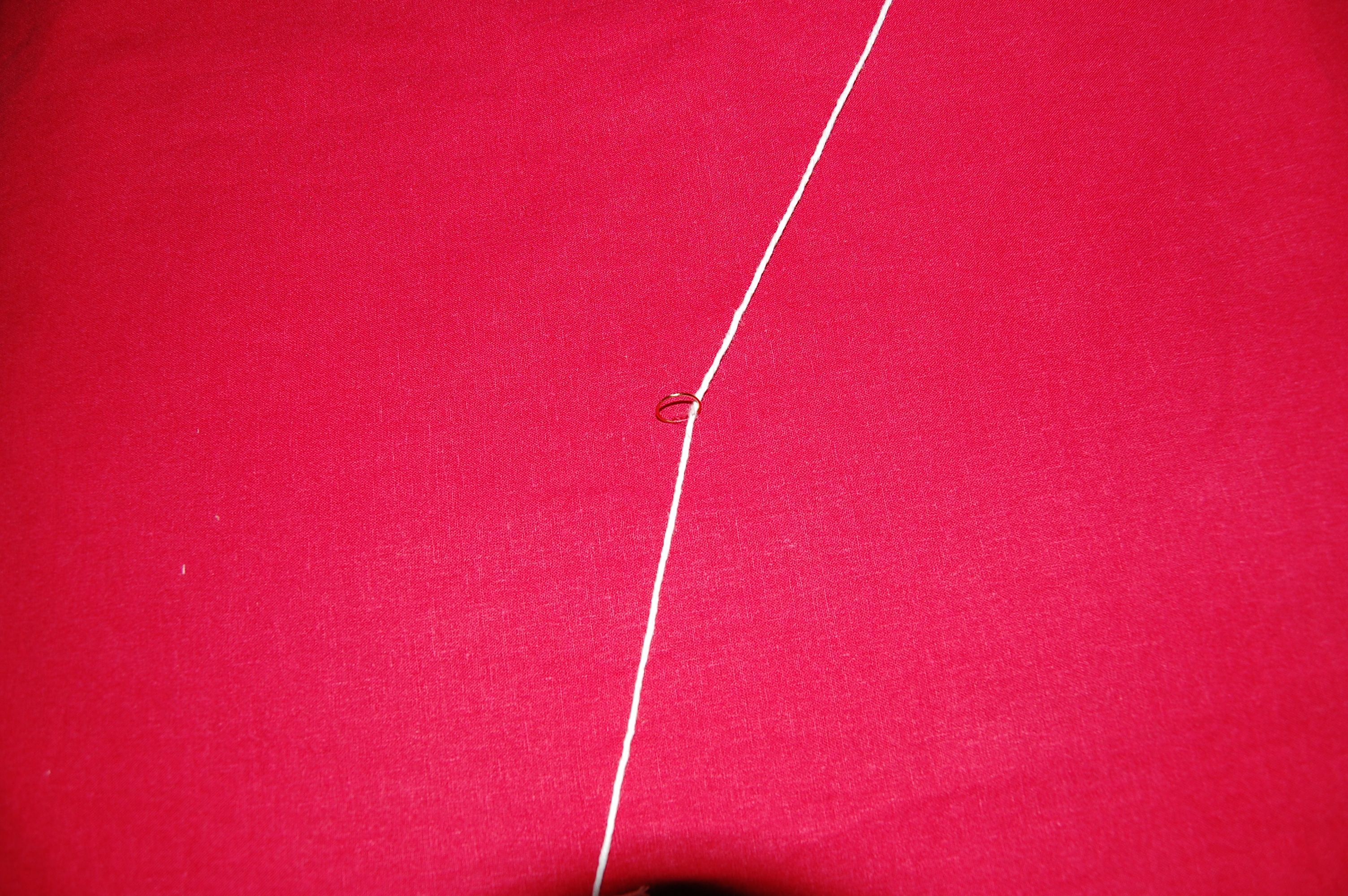 5) After I lined the side curtains and applied the bias tape to them, I attached brass rings, as one would do with an 18th-century-style “drapery” curtain. Simple cotton kitchen string is attached to the ring at the front edge and threaded through the rest of the rings. That way the curtains can be drawn up and attached to the hooks on the top of the frame.