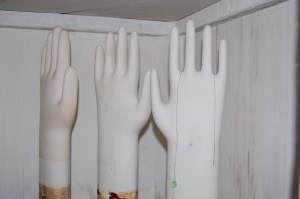 Other fashion vignettes were found throughout the house, such as these glove forms tucked into a corner cupboard.