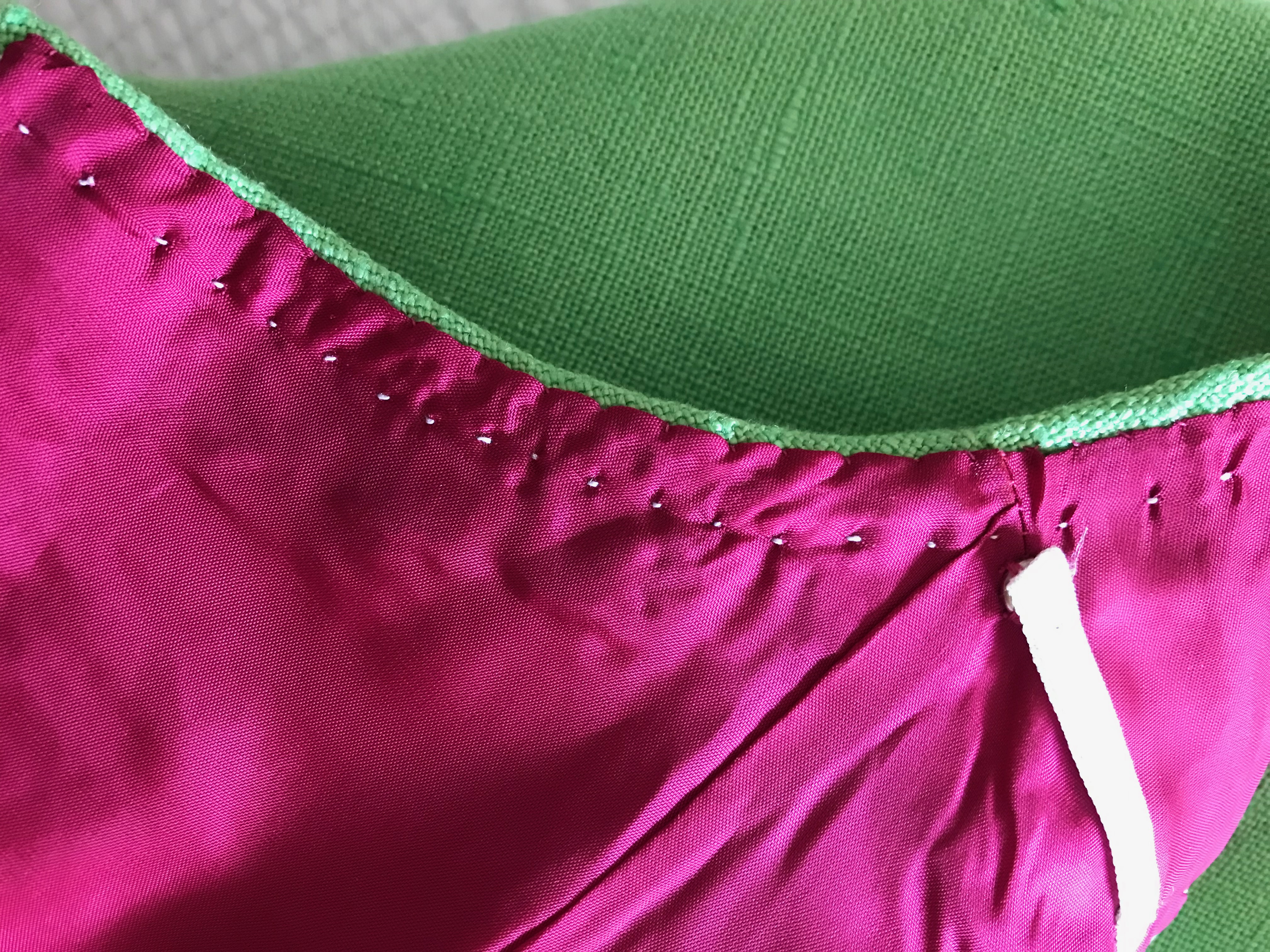 I chose to do a hand-picked, lapped zipper, an application which I think looks so lovely. Interestingly, I hand-picked the zipper in the dress I made in 1973, although it is a centered application.