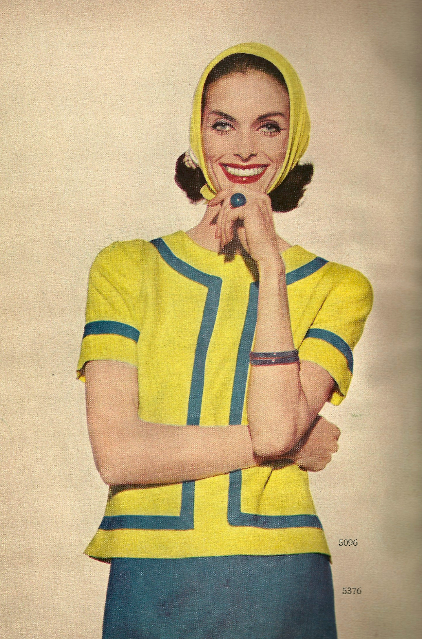 I am so struck by the sophistication of the styling of the fashions and illustrations, the emphasis on Designer offerings, and the exciting abundance of piece goods being sold by manufacturer’s name to the home sewing population. Times and fashions change, but I believe we have much in common with these mid-century home dressmakers plotting their wardrobes with creativity and skill – pairing fabric and pattern. We are the women who sew – and are still the ones with the limitless imaginations!