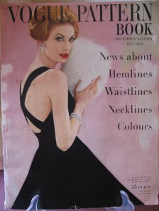 Because the fabric is a very heavy coat-weight boucle, I originally looked for a pattern which either did not include buttons and buttonholes (traditionally more difficult to do well on a fabric of this weight), or had slot-seam buttonholes. I thought I had the perfect pattern in this Vogue from 1962. However, when I actually opened out the pattern pieces, I realized it was not going to work. The kimono sleeves would surely produce drag lines in this heavy fabric, and a double layer of the wool in the shawl collar could be quite bulky.