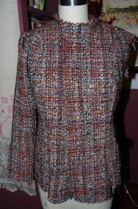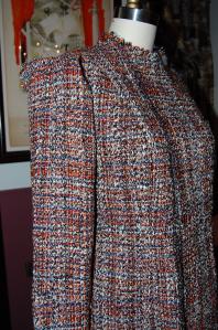 After reading the storyboards on tailoring and dressmaking, I really wonder where a Chanel jacket fits in? The tailoring division of a fashion house specializes in suits and structured garments, with an emphasis on “manipulating fabric on the grain,” and “precision and accuracy when cutting.” The dressmaking division “specializes in draping and soft construction,” “being less beholden to line and structure.” It seems to me that a Chanel jacket straddles the line between the two concepts, being structured, but with a soft fluidity that feels like a dream to the wearer.