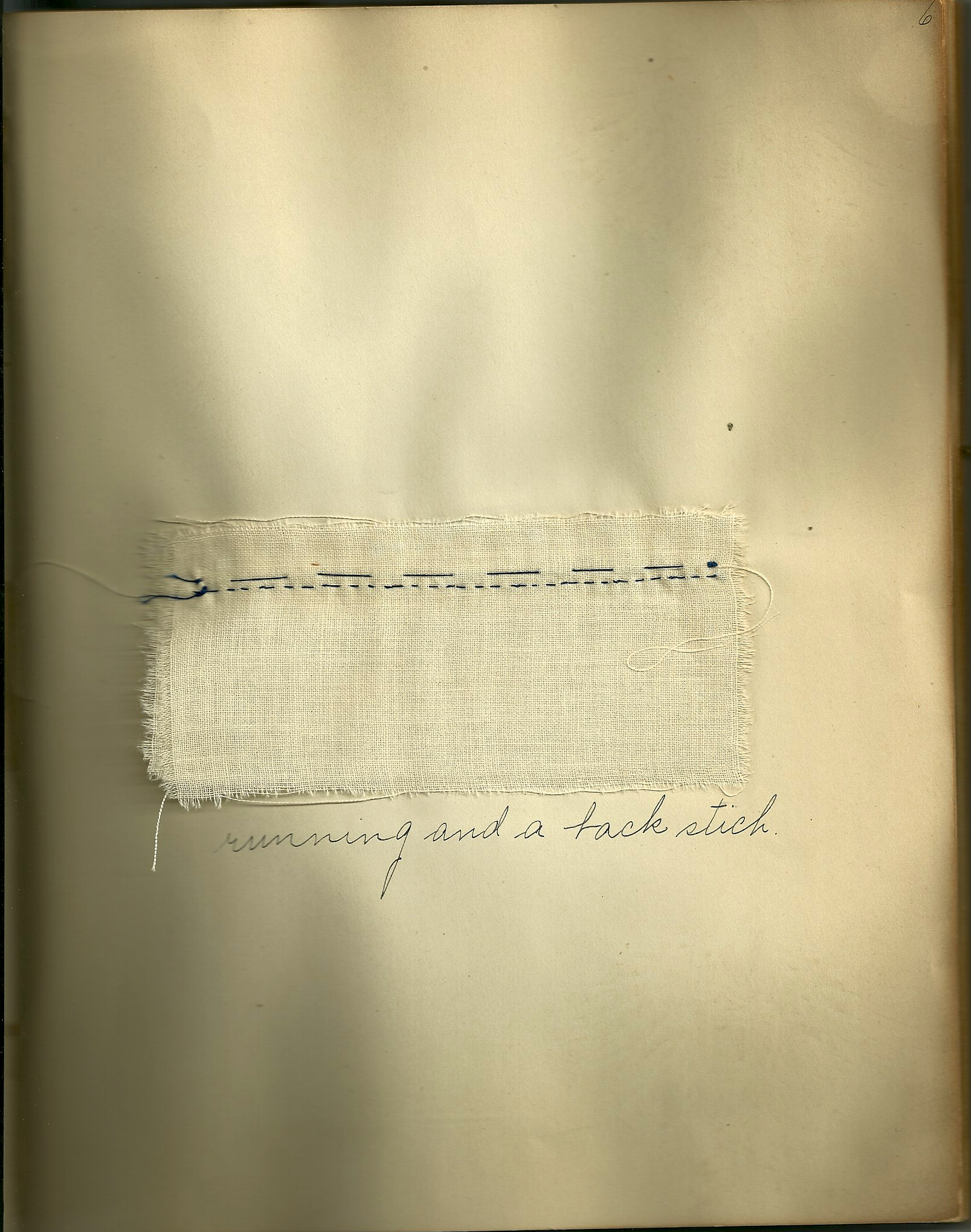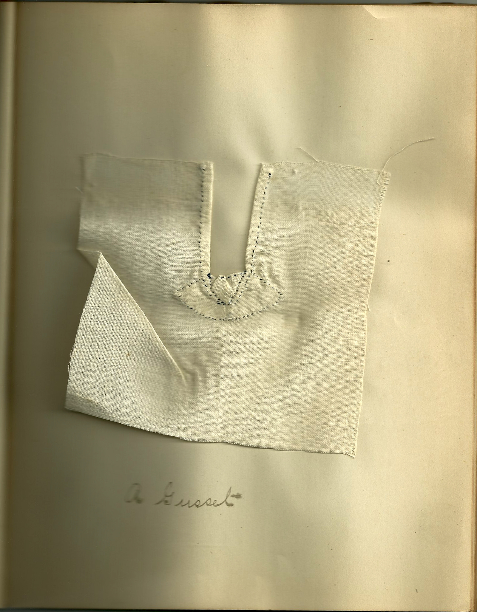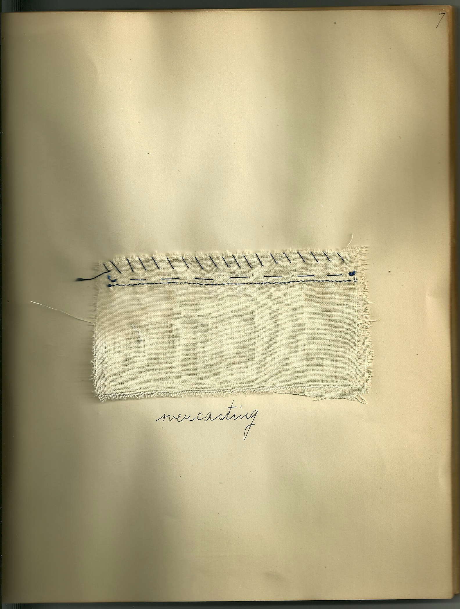 One section of the underlining cotton showing the maze of stitching required to attach the lace to the top of the skirt. Leaving the basting stitches in helps to orient the lace properly.