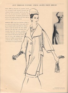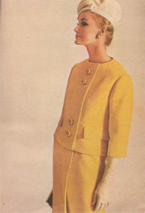 With this exciting discovery, I then wanted to know more about when this fabric was manufactured. I knew that Forstmann Woolen Company had advertised in Vogue Pattern Book Magazine in the 1950s and ‘60s, and I also knew Forstmann woolens were often the fabrics of choice for fashions displayed in the magazine. A little bit of perusing and detective work helped me narrow down an approximate span of years for the production of my wool.