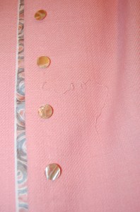 Whenever I am working with vintage fabric, it seems I either have more yardage than I need or, more frequently, less than I need. I have learned over the years there is usually a way to work around having less fabric than I really need. I just have to get creative. And that’s what I did when I made this dress.